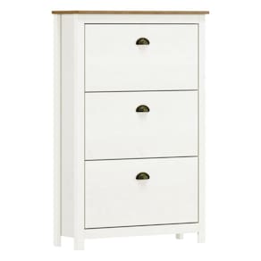 Madeira maciçaNossa Linha Topázio conta com peças de alta qualidade, confeccionadas completamente em madeira maciça, e com a nossa Sapateira 3 Gavetas Topázio - Branco e Freijó não é diferente! Conta com puxadores metálicos. prateleiras que suportam até 10kg distribuídos, isolamento de peças com manta de polietileno expandido, além de possuir um amplo espaço para que você possa organizar seus sapatos sem preocupações!