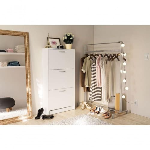 Nada pior do que ver calçados espalhados pela casa ou ainda, quando alguém entra com os sapatos sujos e acaba deixando tudo bagunçado. A solução? A sapateira Fortaleza, perfeita para o hall de entrada da sua casa!Com capacidade para aproximadamente 18 pares de sapatos, ela conta com três portas basculantes, garantindo organização e praticidade. Além disso, sua altura ideal permite que seja usada também como aparador ou balcão, perfeito para deixar chaves, um porta-retratos da família ou o que mais você sapateira Fortaleza vai trazer mais organização e funcionalidade para a sua casa, deixando seu ambiente mais prático e arrumado.