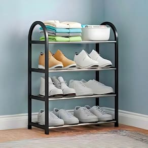 - Prateleira com 4 andares: Oferece amplo espaço para armazenar até 8 pares de sapatos ou outros itens.