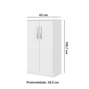 Características do Produto: Material da Estrutura: MDP Pintura do Produto: UV Quantidade de Portas: 02 Quantidade de Prateleiras: 03 Quantidade de Puxadores: 02 Material dos Puxadores: PVC Cromado Possui Sapata: Sim, 5mm