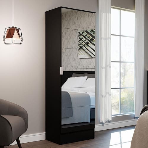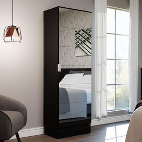 O móvel é fabricado com materiais de muita qualidade, com uma porta batente, dobradiças metálicas e puxador em alumínio, mais resistente ao diário.