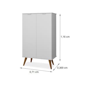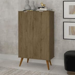 A Sapateira Lisboa é um móvel multifuncional que pode ser utilizado como sapateira ou como armário multiuso. Fabricada em MDP, possui 2 portas com dobradiças metálicas, possui 4 prateleiras com capacidade de até 15 sapatos e pés em madeira com design retrô. Móvel elegante com design retrô perfeito para quem busca praticidade e estilo em um único móvel.
