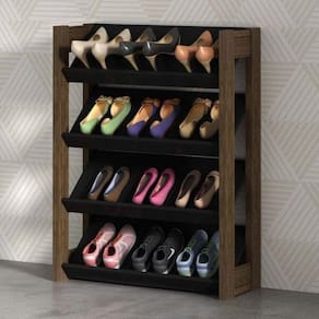 Sapateira organizadora Tecnomobili AZ1025, possui 4 prateleiras, para até 12 pares de sapatos, pés Nogal 25mm, estrutura em MDP, acabamento em BP, ótima para manter seu espaço organizado e deixar seus sapatos em um lugar fácil de encontrar. Acabamento da Prateleira: BP Acabamento dos Pés: BP Altura dos Pés: 90 cm Ambiente Principal: Quarto Complexidade da Montagem: Baixa: pode ser montado por uma pessoa sozinha Cor do Produto: Preto/Nogal Cor Interna: Preto Escala de Brilho: Fosco Escala de Brilho da Prateleira: Fosco Informações Complementares: Peso Suportado 4kg cada prateleira e 12 pares Itens Inclusos: 1 Sapateira, Manual de Montagem e Kit ferragem Linha ou Coleção: Linha AZ Manual de Montagem e Instalação: https://product-hub-prd.madeiramadeira.com.br/597699/documents/25fdc531-88a0-4a7e-ae91-f930a64e761148c58a27ade3f8e45d6c597699.pdf Material da Prateleira: MDP Material dos Pés: MDP Material Principal: MDP Necessita Montagem: Sim Pés Reguláveis: Não Peso: 13 kg Peso Máximo por Prateleira: 4 kg Possui Espelho: Não Possui Pés: 04 Possui Portas: Não Possui Prateleiras: 04 Possui Rodízio: Não Recomendações de Uso, Manutenção e Limpeza: Utilizar somente pano úmido e sabão neutro. Sapatas Niveladoras: Não Sistema de Montagem: Montar o móvel deitado de costas. Forrar o chão com o papelão das embalagens, aconselhamos a ser feita por um profissional, não expor o móvel a fontes de calor ou de umidade. Suporta Até (kg): 4 kg Ean: 7908167287582