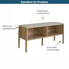 Sapateira Banco Estofado Oslo Artesano 93 cm (largura) MDP Hanover Tecido Fendi Pés Madeira Maciça - Marrom