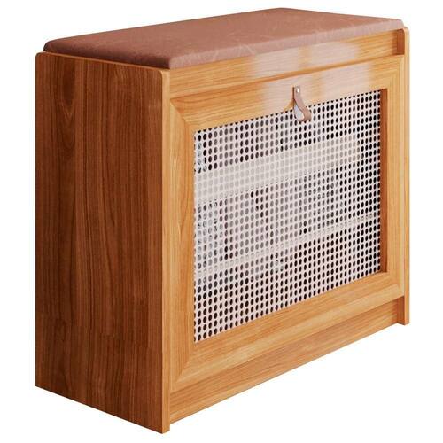 Sapateira Banco Estofado Porta em Ratan 1 Unidade 1 Prateleira 60CM Madeira Maciça Nature Marrom