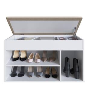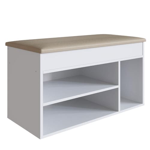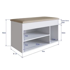 O material utilizado na fabricação é o MDP, com revestimento em FF e acabamento fosco. A sapateira possui uma porta com tampo estofado, que proporciona conforto ao sentar-se. Ela também conta com três prateleiras que suportam até 10 kg cada. O sistema de montagem é feito com parafusos, cavilhas e pregos, e é classificado como de nível médio de dificuldade.
