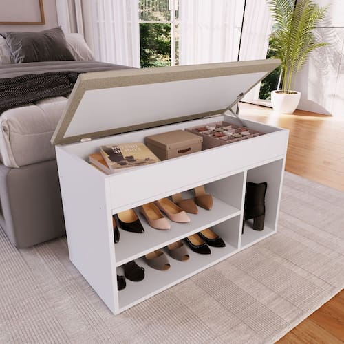 Sapateira Baú com Tampo Estofado 3 Nichos SP080 Branco -