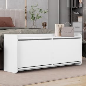 Sapateira Calçadeira Recamier Dália - Casa D A Sapateira Calçadeira Recamier Dália é a escolha ideal para quem busca funcionalidade e funcionalidade. Com estrutura em MDP e MDF, possui acabamento em pintura UV que garante resistência e durabilidade. Suas duas portas com articuladores duplos proporcionam praticidade no uso, enquanto as laterais usinadas com cantos arredondados conferem um design sofisticado. Além de ser um ótimo organizador para calçados e objetos, suporta até 80kg, tornando-se um móvel versátil para diversos ambientes.