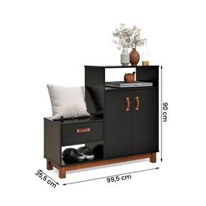 Sapateira com Banco Organic 3 Portas Pés de Madeira Maciça - Preto