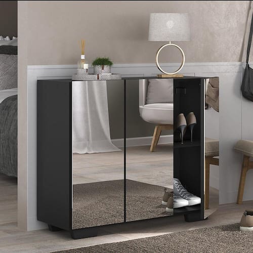 A Sapateira com Espelho 3 Portas Nina Multimóveis é produzida em MDP com acabamento acetinado (cerca de 20% de brilho), que garante maior durabilidade, facilidade na limpeza, além de um acabamento superior. Com 3 portas, possui um excelente espaço interno para acomodar seus sapatos e demais pertences (as prateleiras internas suportam 2 e 5 Kg e o tampo 7 Kg). Os pés quadrados, em polipropileno, facilitam na hora da limpeza. Os espelhos na porta deixam o móvel mais requintado, criando um ambiente moderno e charmoso. Os espelhos são de vidro (o que evita que a imagem fique distorcida) e lapidados, ou seja, passam por um processo para que as bordas não fiquem cortantes, o que garante maior segurança. Compacta, é uma excelente opção para otimizar seu ambiente, para que você possa aproveitá-lo da melhor maneira possível.