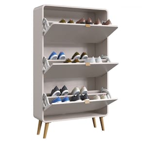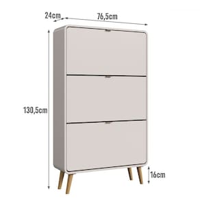 O(a) Sapateira Curve 3 Portas Bege Dunas - Completa Móveis é produzido em MDP na escala de brilho Fosco, e possui um grau de dificuldade de montagem: Médio.