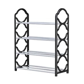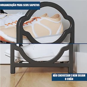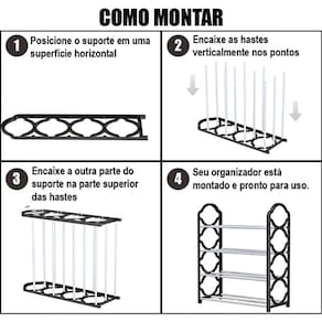 Especificações Técnicas: - Material: Plástico resistente e hastes de aço; - Cor: Preta; - Quantidade de Andares: 4; - Capacidade: Varia de acordo com o tipo e tamanho dos calçados.