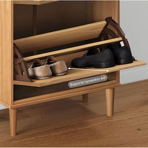 Com duas Portas Basculantes espaçosas, a Sapateira Design Escandinavo Para Corredores e Ambientes Pequenos Mikka, acomoda até 12 pares de sapatos, incluindo tamanhos maiores (até número 44). Compacta, prática e com design atemporal, a Sapateira Mikka é a escolha perfeita para quem valoriza organização e bom gosto em pequenos espaços.