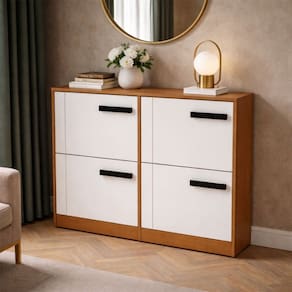 O(a) Sapateira Lisboa 4 Portas Branco/Freijó - Politorno é produzido em MDP na escala de brilho Semi-Fosco, e possui um grau de dificuldade de montagem: Médio.