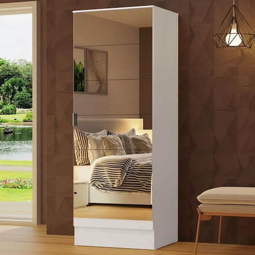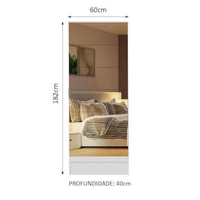 Possui uma porta com vários espelhos que ampliam o espaço e trazem mais profundidade ao ambiente. Além disso, os itens são de ótima de qualidade, como dobradiças metálicas e puxador em alumínio, que aumentam a durabilidade do móvel.