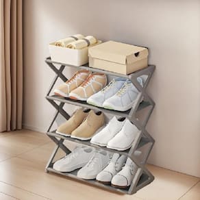 Sapateira Modular 4 Prateleiras Ajustavel Casa Closet Sala Estante 8 Pares Calcados Luxo Cinza