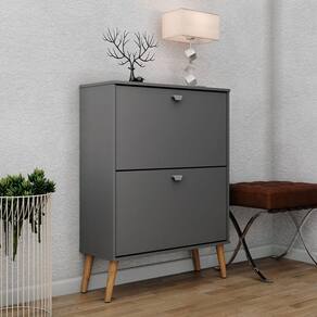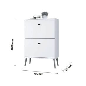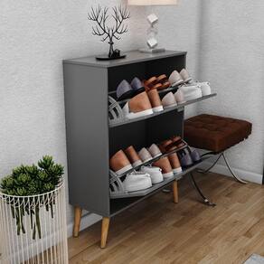 A Sapateira Mudy - MoveisAqui com suas 2 gavetas articuladas e divisórias internas foi pensada para garantir a organização do seu ambiente sem ocupar muito espaço. Seus pés palito e seu design clean complementam a decoração mantendo seu dormitório charmoso e ões do produto montado:Altura: 108 cmLargura: 79,6 cmProfundidade: 32,3 cmObservações:- Produzido MDF e MDP;- Pés em madeira maciça estilo retrô;- Gavetas articuladas;- Comporta aproximadamente 12 pares de calçado;- Pintura ultravioleta