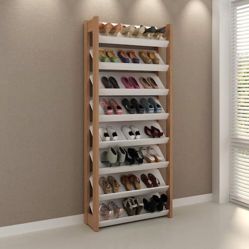 A Sapateira Multimóveis possui 8 prateleiras as quais podem ser colocados calçados, livros e outros objetos. Sua estrutura é em MDP, acabamento em pintura UV e parte em BP. Suas principais características são versatilidade, design contemporâneo, e linhas simétricas, trazendo elegância e harmonia no ambiente desejado.