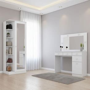 Sapateira Multiuso Duetto e Penteadeira Ambiente com Led Branco - Henn