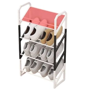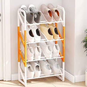Material: Plástico e metalDimensões: 45,7 cm de largura, 18,4 cm de profundidade e 70 cm de alturaPeso: 600gCapacidade: até 8 paresCores: Branca com detalhes em preto, laranja, azul ou cinza (enviadas conforme disponibilidade em estoque)Conteúdo: 01 sapateira multiuso de 4 andares