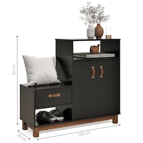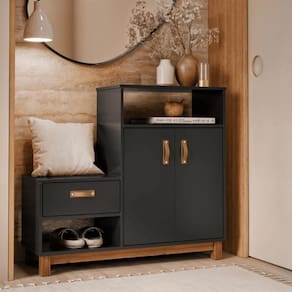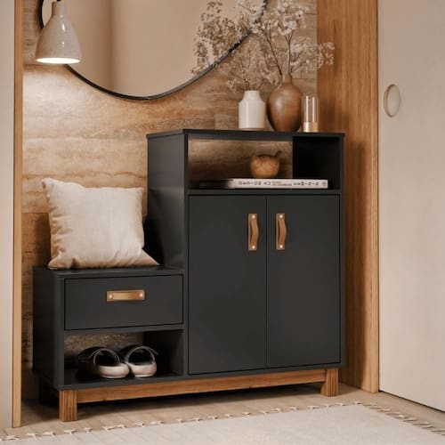 Sapateira Multiuso Utah Preto Se você busca um móvel que une praticidade, elegância e funcionalidade, a Sapateira com Assento é a escolha perfeita! Dimensões do produto montado: Altura: 90 cm Largura: 100 cm Profundidade: 36 cm Características: - Material MDF/MDP - Cor preto - Prateleira - Porta - Nicho Itens Incluso: 01 Sapateira. Kit completo para montagem. Manual de montagem. Observações: - Não nos responsabilizamos pela montagem do produto. - Sistema de Montagem: Parafusos, Cavilhas e Tampos. - É recomendado que a montagem seja feita por um profissional qualificado. - As imagens indicam uma sugestão de uso e são apenas ilustrativas, os objetos decorativos não estão inclusos. - Ao iniciar a montagem, forre o chão com o papelão das embalagens para proteger as peças de arranhões. Instruções e Cuidados: Limpar com pano seco, manter em lugar livre de umidade, ao abrigo de exposição direta ao sol. PRODUTO: SAPATEIRA | LARGURA PRODUTO COM EMBALAGEM (CM): 1 | GARANTIA DO FABRICANTE: 3 | ALTURA DO PRODUTO COM EMBALAGEM (CM): 15 | PESO DO PRODUTO (KG): 29 | MARCA: CASAH | COMPRIMENTO DO PRODUTO (CM): 36 | QUANTIDADE DE PORTAS: 2 | ESTADO DE ORIGEM: SP | INSTRUÃ?Ã-ES/CUIDADOS: Limpar com pano macio e seco, nÃo utilizar produtos abrasivos. | COMPRIMENTO PRODUTO COM EMBALAGEM (CM): 42 | PESO PRODUTO COM EMBALAGEM (KG): 30 | LARGURA DO PRODUTO (CM): 100 | DESCRIÃ?Ã?O DO TAMANHO: 90X100X36 | COR PREDOMINANTE: PRETO | QUANTIDADES DE CAIXAS DE EMBALAGEM: 1 | ALTURA DO PRODUTO (CM): 90 | MATERIAL PRINCIPAL: MDF/MDP | PRODUTO PRECISA DE MONTAGEM?: Sim, a montagem à facil mas sugerimos a contrataÃÃo de um montador profissional para a montagem do produto. NÃo nos responsabilizamos por danos causados no ato da montagem. | CORES DO PRODUTO (FILTRO DE CORES): PRETO | QUANTIDADE DE NICHOS: 2 | QUANTIDADE DE GAVETAS: 1 | QUANTIDADE DE PRATELEIRAS: 1