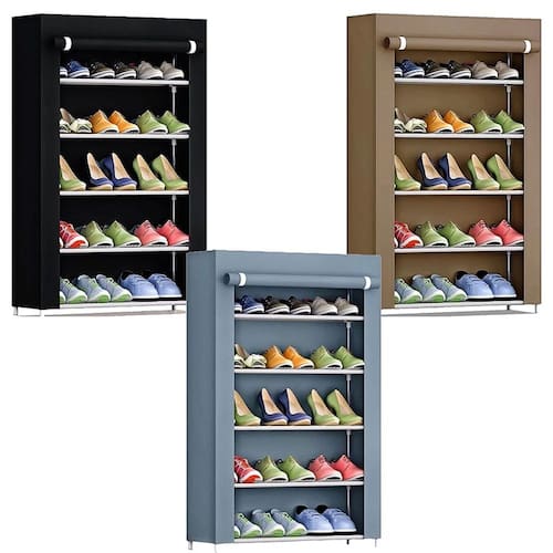 Sapateira ideal para você economizar espaço e organizar seus calçados de forma eficaz, também podendo ser utilizada para livros, brinquedos, pertences pessoais e outros. Possui 5 prateleiras que suportam até 15 pares de sapatos, produzidas em metal revestido de tecido leve para um acabamento perfeito, sendo facilmente transportada para qualquer ambiente e montada com agilidade.