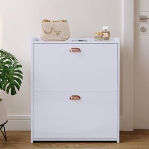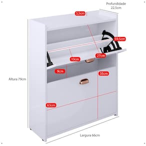 Fabricada em MDP de alta qualidade, oferece resistência e durabilidade. Conta com duas gavetas basculantes com prateleiras, ideais para armazenar até 12 pares de calçados, mantendo tudo organizado e harmonioso.