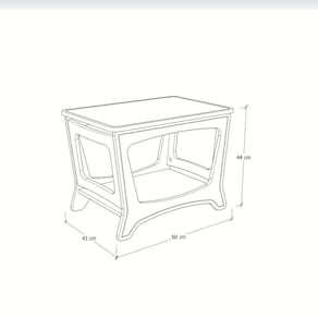 Medidas: 60cm de comprimento, 41cm de profundidade e 44cm de altura.