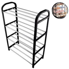. Produto: sapateira prateleira de sapatos multiuso estante organizador . Possui 4 prateleiras de alta resistência . Capacidade: 8 pares . Material: plástico e metal . Não empiilhável Marca: Tesla Store