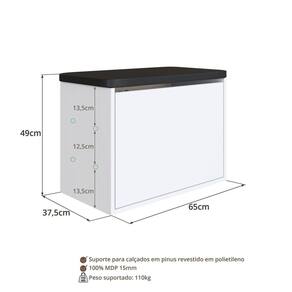 Já pensou em ter todos os seus sapatos organizados de uma forma prática, com muita beleza e aquele design moderno? Para isso temos a sapateira puff SP0007, que além de você guardar seus calçados, serve também de puff para sentar. Acabamento da Porta: Poliéster Acabamento da Prateleira: Poliestireno Ambiente Principal: Quarto codigo_ean: 7900288223852 Complexidade da Montagem: Baixa: pode ser montado por uma pessoa sozinha Cor: Branco/Preto Cor do Produto: Branco/Preto Cor do Puxador: Branco Cor Flex: Não Cor Interna: Branco Escala de Brilho: Fosco Escala de Brilho da Porta: Fosco Escala de Brilho da Prateleira: Fosco Itens Inclusos: 1 Sapateira, Kit Ferragens e Manual de Montagem Linha ou Coleção: Quarto Manual de Especificação Técnica: https://product-hub-prd.madeiramadeira.com.br/171345621/documents/91f35bce-8fcb-489a-8ab8-0038b511d71b3164428522517563130065673.pdf Manual de Montagem e Instalação: https://product-hub-prd.madeiramadeira.com.br/171345621/documents/a10810bc-86b1-44de-96e3-34627bc09caa3164430522517563130286938.pdf Marca: Plasmóbile Material da Porta: MDF Material da Prateleira: Madeira Maciça Material Principal: MDP Montagem Flex: Não Necessita Montagem: Sim Origem do Produto: Nacional Peso: 12,5 kg Peso Máximo por Prateleira: 3 kg Possui Espelho: Não Possui Possui Pés: Não Possui Portas: 01 Possui Prateleiras: 02 Recomendações de Uso, Manutenção e Limpeza: Para a limpeza do móvel utilizar pano levemente umedecido Sapatas Niveladoras: Não Sistema de Montagem: Parafuso e Cavilhas Suporta Até (kg): 110 kg Tipo de Dobradiça/Corrediça da Porta: Metálica Tipo de Madeira Maciça da Prateleira: Pinus Tipo de Porta: Basculante Tipo de Puxador da Porta: Não Possui - Abertura por Fecho Toque Marca: Não Informado