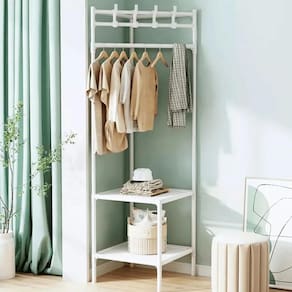 - Cabideiro com ganchos extras para roupas, chapéus, bolsas e acessórios