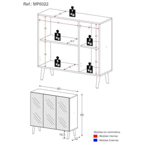 Altura: 85cm | Largura: 90cm | Profundidade: 32cm