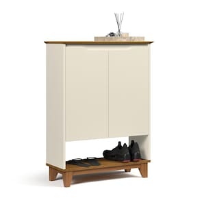Sapateira Retrô com Pés em Madeira para Hall de Entrada Flow - 2 Prateleiras