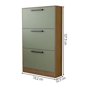 O(a) Sapateira Roma 3 Portas Freijo/Oliva - Loja é produzido em MDP na escala de brilho Brilhante, e possui um grau de dificuldade de montagem: Médio.