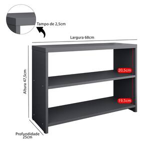Dispõe de 2 amplos compartimentos, ideias para acomodar até 6 pares de calçados. Seu tampo pode ser utilizado como assento, auxiliando na hora de calçar os sapatos e também pode ser utilizado para armazenar itens decorativos ou como um espaço extra para os calçados.