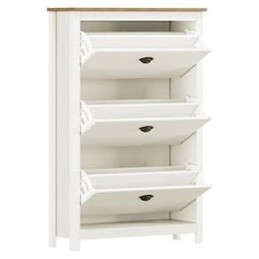 A Sapateira Topázio 3 Gavetas da Finestra Móveis é a escolha ideal para quem busca organização, funcionalidade e um toque clássico na decoração. Produzida com estrutura em madeira maciça de pinus de reflorestamento, oferece resistência e durabilidade, além de acabamento refinado com pintura acetinada em verniz PU e UV. Composta por 3 gavetas espaçosas, é capaz de armazenar de 11 a 20 pares de calçados, acomodando modelos de até o tamanho 42. Os puxadores metálicos em ouro envelhecido agregam charme ao design, enquanto os pés alongados em madeira maciça conferem estabilidade e elegância ao móvel. É uma peça funcional e versátil, ideal para manter seus sapatos sempre organizados com praticidade e estilo.