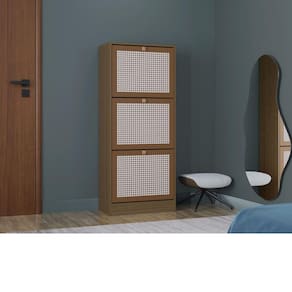 Caracteristicas: Ideal para quarto, closet ou lavanderia. Design vertical compacto para maximizar o espaco. 3 portas para armazenar sapatos de forma organizada. Montagem facil e rapida. Cores modernas e criativas para transformar seu ambiente Amplo Espaco de Armazenamento: Com 3 portas, voce tera espaco de sobra para organizar seus sapatos Estilo Unico: Design exclusivo com pintura 3D que imita a palha indiana Durabilidade: Material resistente que garante longa durabilidade