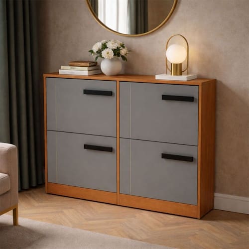 O(a) Sapateira Valência 4 Portas Cinza/Freijó - Politorno é produzido em MDP na escala de brilho Semi-Fosco, e possui um grau de dificuldade de montagem: Médio.