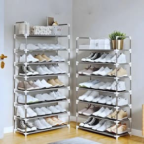 A Sapateira Vertical Giga é a solução ideal para quem busca organização e praticidade no dia a dia. Com um design moderno e funcional, este organizador possui 9 prateleiras, permitindo o armazenamento de até 27 pares de sapatos. Ideal para otimizar espaços em closets, quartos ou até mesmo na entrada da casa.Características:- Capacidade: Armazena até 27 pares de sapatos, ideal para quem possui uma coleção variada.- Material: Confeccionada em plástico resistente, garante durabilidade e fácil limpeza.- Dimensões: Compacta, perfeita para ambientes pequenos ou com espaço limitado.- Montagem: Produto que requer montagem, com instruções claras que facilitam o processo.- Design: Estilo moderno que se adapta a qualquer tipo de decoração, agregando valor ao ambiente.Vantagens:- Otimização de Espaço: Seu formato vertical permite aproveitar áreas reduzidas, mantendo os calçados organizados e à mão.- Acessibilidade: Facilita a visualização e o acesso rápido aos sapatos, evitando a bagunça.- Praticidade: Ideal para uso diário, ajudando a manter a ordem sem esforço.Cuidados:- Para prolongar a vida útil do produto, recomenda-se evitar a exposição direta ao sol por longos períodos e realizar a limpeza com pano úmido. Não usar produtos abrasivos.Instalação:- A montagem é simples e rápida. Acompanha manual com instruções passo a passo, garantindo que você possa montar sua sapateira sem dificuldades.Conteúdo da Embalagem:- 74 tubos de aço- 40 encaixes- 9 bases de pano- 1 manual de montagem na caixaSe você procura um organizador eficiente para seus calçados, a Sapateira Vertical 8 Prateleiras Giga é a escolha certa. Prática, estilosa e funcional, transforma a maneira como você armazena e cuida de seus sapatos. Ideal para qualquer ambiente, proporciona um toque de organização e sofisticação ao seu espaço.