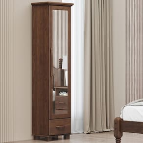 Totalmente fabricada em madeira maciça, essa sapateira combina um espelho integrado, perfeito para checar o look completo, ao passo que as prateleiras e a gaveta resumem o inteligente armazenamento para acessórios ou itens mais pessoais. Ideal para halls de entrada, suítes compactas ou qualquer espaço que mereça uma solução sofisticada, essa sapateira com espelho prova que organização e estilo podem caminhar juntos.