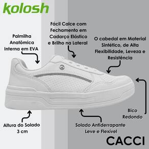 O Tênis Kolosh Casual é versátil e leve, ideal para suas atividades do dia a dia. Com calce fácil proporcionado pelo elástico que substitui os cadarços de amarrar, o modelo otimiza seu tempo. Além disso, é feito em material sintético de extrema qualidade, que garante durabilidade, conforto e um visual moderno e fácil de combinar. O design do tênis é minimalista e atemporal, com sola caixa de aproximadamente 3cm de altura que garante conforto e estabilidade, e detalhes lineares que trazem um toque de charme.