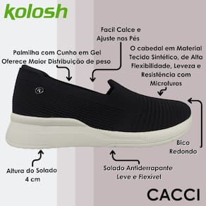 Feito de material resistente, este tênis possui um peso de apenas, o que o torna uma opção leve e fácil de usar por longos períodos. Seja para um passeio casual ou para enfrentar as demandas do dia a dia, o tênis Kolosh oferece o equilíbrio perfeito entre estilo e conforto, garantindo que você esteja sempre pronta para qualquer ocasião.
