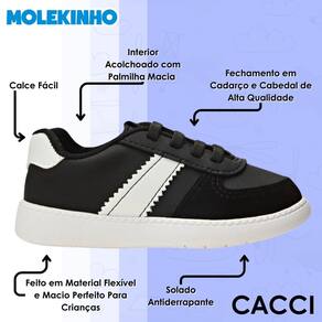 Fechamento em cadarço elástico: Pensado para facilitar o dia a dia dos pequenos e dos pais, oferece um ajuste perfeito e prático, garantindo que o sapatênis fique firme nos pés sem apertar ou incomodar.