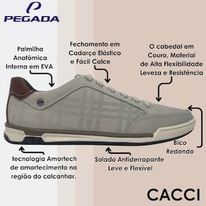 Os modelos da Linha Daily são produzidos em couro, matéria prima de alta qualidade, resistência e durabilidade. O forro em tecido espumado garante o conforto e a absorção de suor, características necessárias para manter o pé seco e arejado. Já a palmilha é feita em material macio e conta com a tecnologia Amortech de amortecimento na região do calcanhar. O solado é antiderrapante e de alta flexibilidade, oferecendo a segurança e a versatilidade ideal ao calçado do dia-a-dia. Além de tudo isso esse modelo possui o sistema "Calce Fácil", com um cadarço em elástico, super prático de calçar. É perfeito para quem busca estilo e praticidade sem abrir mão do conforto.