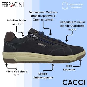 Com visual urbano e acabamento impecável, o modelo Ferracini Vox é perfeito para acompanhar você em compromissos diversos, desde o trabalho até momentos de lazer, mantendo sempre a elegância e o bem-estar em cada passo.