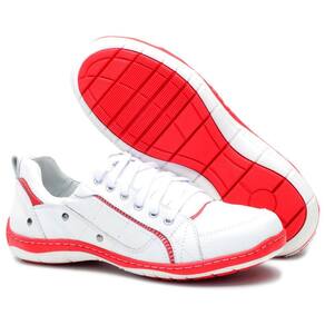 Sapatênis Masculino Couro Casual Macio Costurado Cadarço - 41 - Vermelho Carne