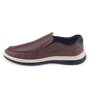 Sapatênis Democrata Easy Leave é confeccionado em couro. Possui elástico nas laterais facilitando o calce, forro em tecido, detalhe em couro preto no calcanhar, frente do cabedal costurado a mão. A Sola é feita de borracha, palmilha macia de p.u com forro de tecido e bico arredondado. O solado é discreto com 3cm de altura traseiro e 1,5cm frontal aproximadamente, possui frisos para maior segurança.