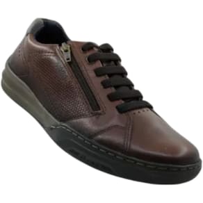 Sapatênis Masculino em Couro Casual Dia a Dia Calce Fácil Pegada Easy Wear 111002 - 37 - Marrom