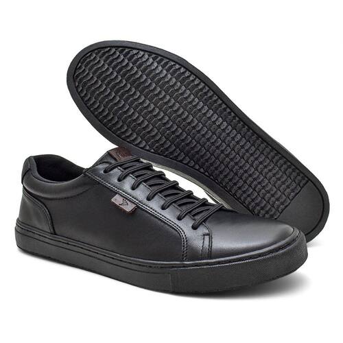 Sapatenis Masculino em Couro Moda Casual Sola Macia e Leve Homens Estilosos - 44 - Preto