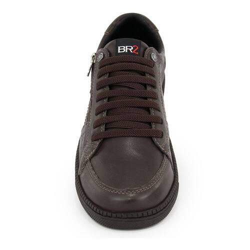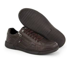 Sapatênis Masculino Ziper Footwear Cadarço Em Couro Preto - Marrom - 39
